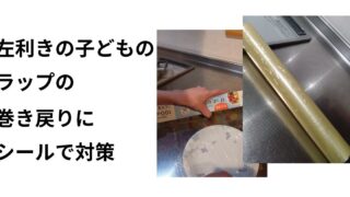 左利きで指先の力が弱い子どもがいるウチが困っていたラップの「巻き戻り」問題。ラップの箱のここにシールを貼るだけで「巻き戻り」が激減したカンタンな対策を紹介します。