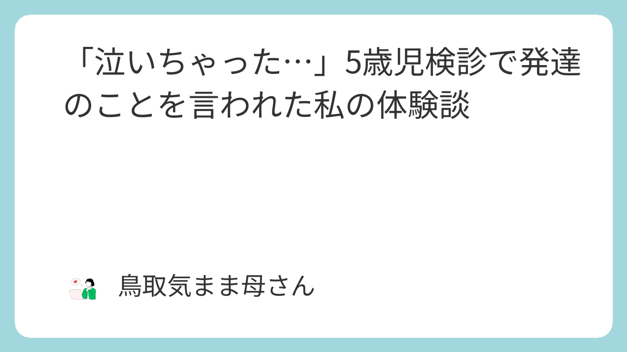 5歳児検診で発達について指摘されたときは、本当にショックでした。