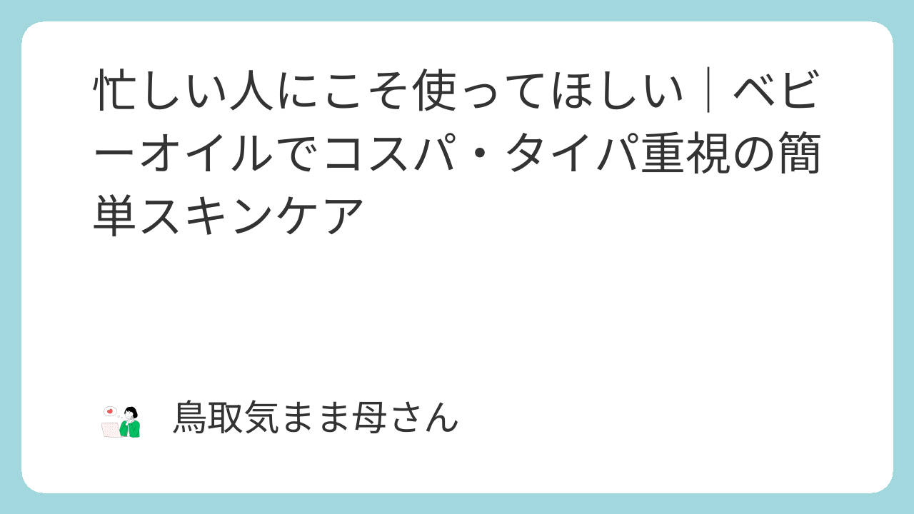 この記事では、忙しい人が、今あるベビーオイルでコスパ・タイパよくスキンケアを続ける方法