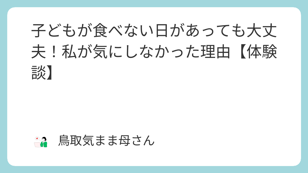 でもウチの場合、子どもがご飯を食べない日があっても、あまり気にしていませんでした。