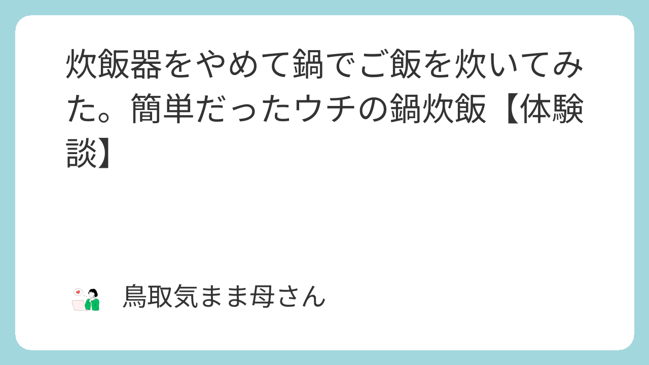 炊飯器を洗うのが面倒で、「鍋でご飯を炊けないかな?」と思ったのがきっかけでした。
