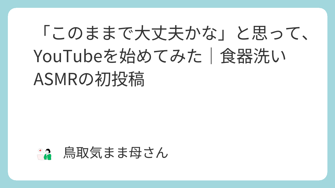 「このままで大丈夫かな」と思って、YouTubeを始めてみた|食器洗いASMRの初投稿